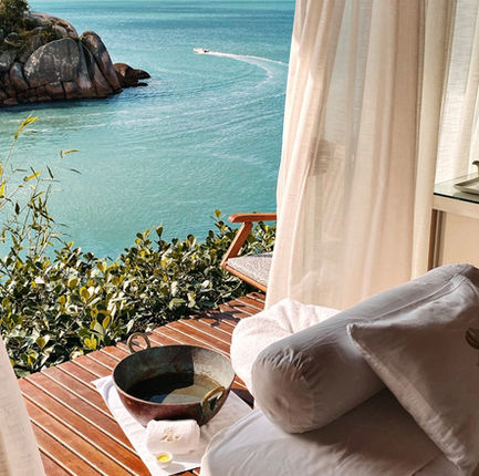 O Resort possui uma posição privilegiada, a apenas 50 km do aeroporto de Florianópolis, cujo acesso se dá por transfer de carro ou helicóptero. São ao todo 25 bangalôs distribuídos em uma península particular rodeada pelo exuberante mar da Costa Esmeralda. Toda a privacidade e conforto que garantem ao hospede uma verdadeira experiência em hospedagem, seguindo o alto padrão de serviço e atendimento internacional.
